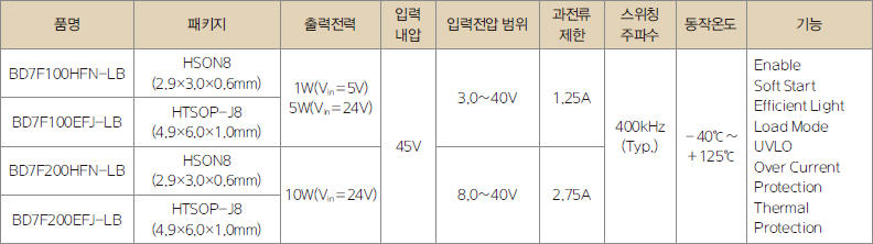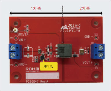 이 시리즈와 더불어, 대표 제품인 ‘BD7F100HFN-LB’의 평가 보드 ‘BD7F100HFN-EVK-001’도 판매되고 있다. 이 평가보드를 통해, BD7F100HFN-LB를 탑재한 입력전압 24V, 출력전압 5V, 출력전류 800mA의 절연 전원을 간단히 평가할 수 있다.