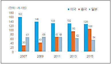 ▲그림 4. 세계 500강 기업 보유수 (출처 : 공공망)
