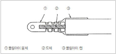 풀링아이(Pulling Eye)에 의해 케이블을 당길 경우 허용 인장력은 규정된 범위를 유지하고 풀링아이와 인입용 철선 간에는 회전금구를 취부해 회전 비틀림에 의한 케이블 손상을 방지해야 한다.