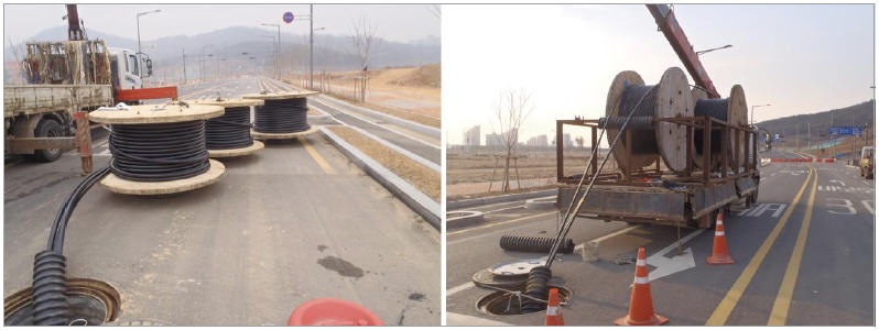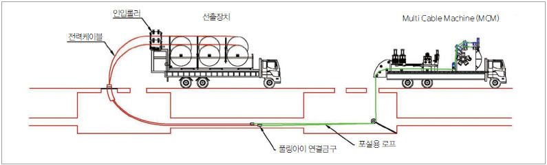 2. Multi Cable Machine(MCM)를 이용해 최대 2회선의 지중 전력케이블을 동시 포설하는 시공방법