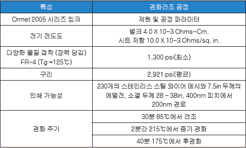 ▲ 표 3. TLPS 경화 페이스트의 Ormet 형태에 대한 성질과 경화 공정