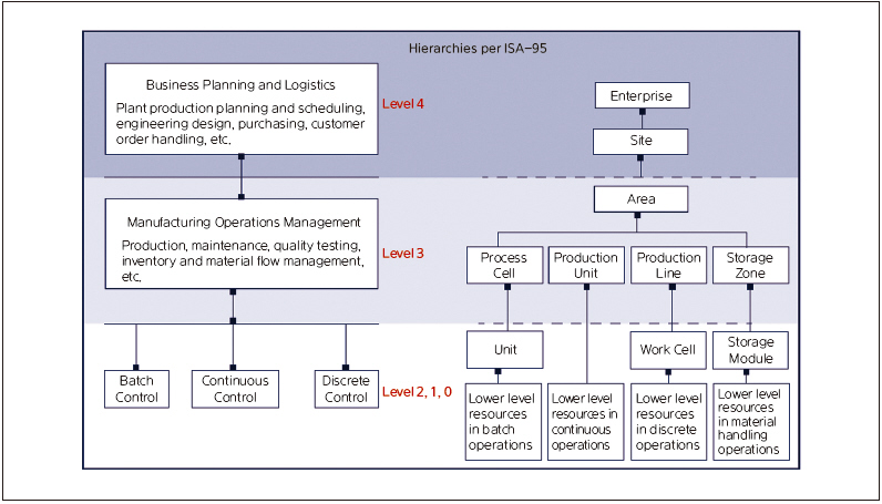 ▲ 그림 2. 엔터프라이즈와 제어 시스템 간의 자동화된 인터페이스를 개발하기 위한 SA-95 모델