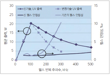 ▲ 그림 1. 향상된 UV광 변환을 통해 기존의 공칭 펄스 주파수보다 훨씬 높은