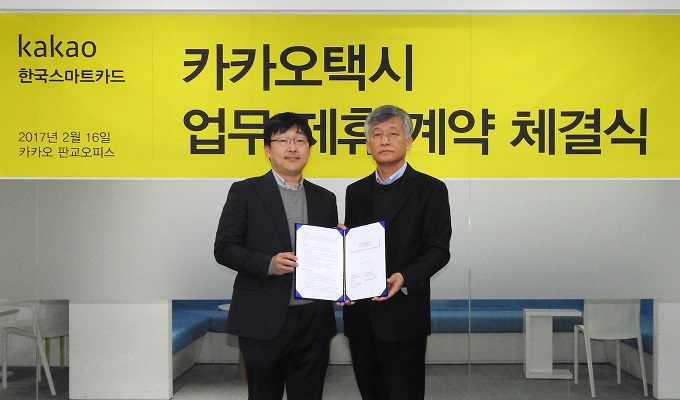 카카오는 16일 경기도 성남에 위치한 카카오 판교오피스에서 ‘카카오택시 자동결제를 위한 업무 제휴 계약’을 체결했다고 밝혔다.