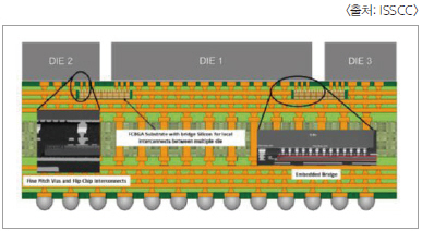 실리콘 다이에서 만든 브릿지를 BGA 기판에 탑재한 것으로, TSMC가 개발한 ‘CoWoS(Chip on Wafer on Substrate) 프로세스’로 사용되고 있는 실리콘 기판에 비해 대폭적인 소형화에 성공했다. CoWoS 프로세스는 인텔의 라이벌 인 FPGA 벤더 자일링스(Xilinx)와 GPU 벤더 엔비디아(NVIDIA)에도 채용되고 있다. EMIB 기술은 55μm의 마이크로 범프와 100μm이상의 플립 칩 범프를 조합해 사용함으로써 각각 96개의 I/O를 탑재한 트랜시버 채널을 최대 24개 지원할 수 있다고 한다. 전용 프로토콜을 사용해 1대당 1.2pJ/비트에서 1핀당 2G비트/초를 실현할 수 있다.