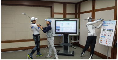 ▲ 그림 3. 학습자와 티칭 프로의 골프 학습 시스템 활용 시연