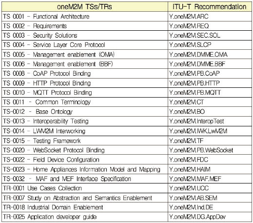 ▲ 표 1. ITU-T SG20 제출 oneM2M 기술 규격 및 보고서
