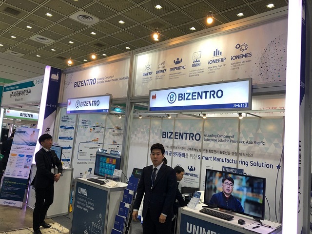 비젠트로는 이번 전시회에서 국내 최초로 개발한 ERP 솔루션을 비롯, 제조현장의 스마트공장을 지원하는 UNIMES, 기업의 협업과 소통을 위한 커뮤니케이션 플랫폼 UNIPORTAL, 경영진을 위한 경영정보와 실무자를 위한 분석정보를 제공하는 UNIBI 등을 소개했다.