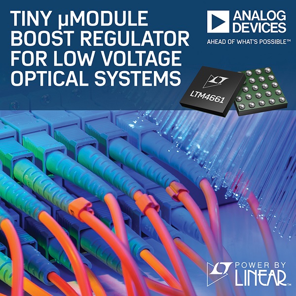 아나로그디바이스(Analog Devices, ADI)가 저전력 스텝업 µModule 레귤레이터인 파워 바이 리니어(Power by Linear) LTM4661을 6.25mm x 6.25mm x 2.42mm BGA 패키지로 판매한다.