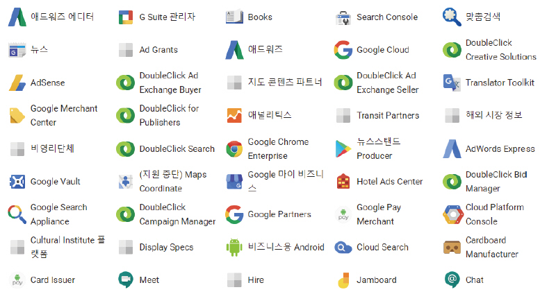 ▲ 구글에서 제공하고 있는 비즈니스 서비스 종류