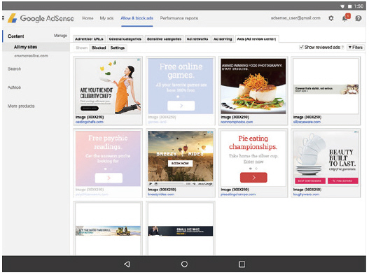 2) 디스플레이 광고 : 애드센스(2003년 출시)는 콘텐츠 게시자들의 수익창출을 위한 구글의 솔루션이다. 구글은 애드센스를 통해 웹페이지나 웹사이트의 내용에 맞는 적절한 광고를 게재한다.