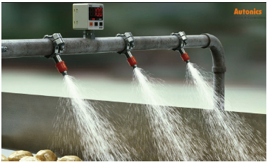 컨베이어 벨트 위에 설치된 세척 분사 노즐에서는 일정한 수압으로 세척액이 분사되는데, 이 과정에서 살수의 압력을 측정하는 용도로 사용되는 것이 바로 오토닉스의 디지털 압력센서(PSAN)이다.