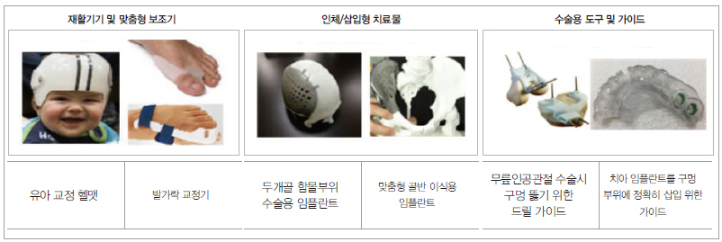 맞춤형 보조기는 의족, 유아 머리 교정기, 허리 및 발가락 교정기 등으로 이는 환자 체형에 맞도록 하는 것이 특히 중요한 분야이다.