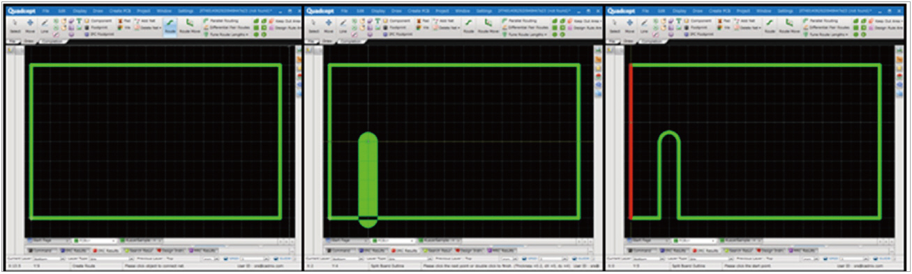 가공하고자 하는 모양대로 선 또는 점(Hole)을 그리기만 하면, 그려진 선과 점(Hole)의 형상대로 Board Outline이 가공된다. [Create Board Slit]은 자유 자재로 그려지는 선 형상대로 Board Outline을 쉽게 그릴 수 있고, Board 중간에 배치되는 Hole 형상을 만들기도 쉬워서 많은 사용자들이 좋아하는 기능 중 하나이다.