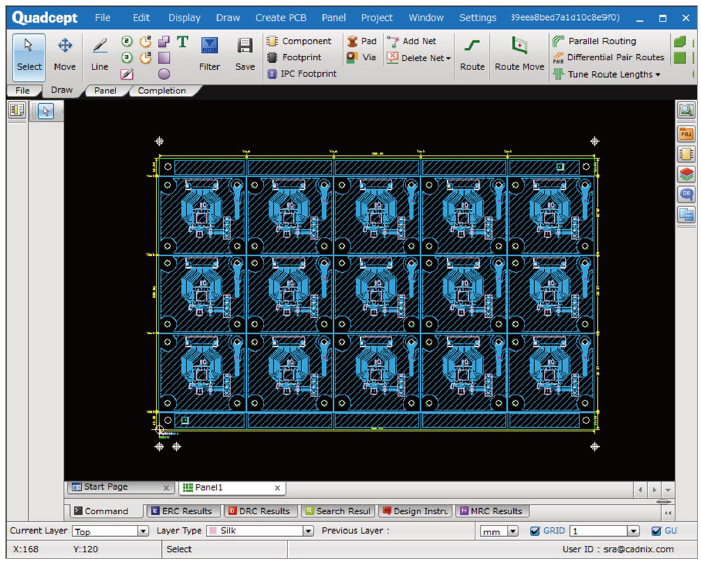 [Panel] 기능을 이용하면 손쉽게 Panel Board를 만들 수 있다. Single Board의 형상을 불러온 다음 배열(가로, 세로 배치 개수) 상태와 Single Board간 간격만 입력하면 Panel Board가 완성되는데, 배열 상태나 Machine Hole(Missing Hole)의 위치를 직접 설정하는 방식이기 때문에 기구와의 간섭을 피해 Machine Hole(Missing Hole)의 위치를 배치할 수 있고, 충격에 민감한 부품을 피해 Router 형상이나 Machine Hole(Missing Hole)을 배치할 수도 있다.