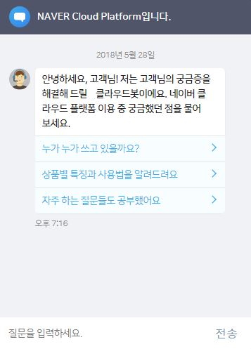 네이버 클라우드 플랫폼 고객지원 채팅에도 Chatbot 상품이 적용될 예정이다.