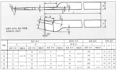 ▲ 표 1 판 바이트의 형상 치수 (JIS B 4151)