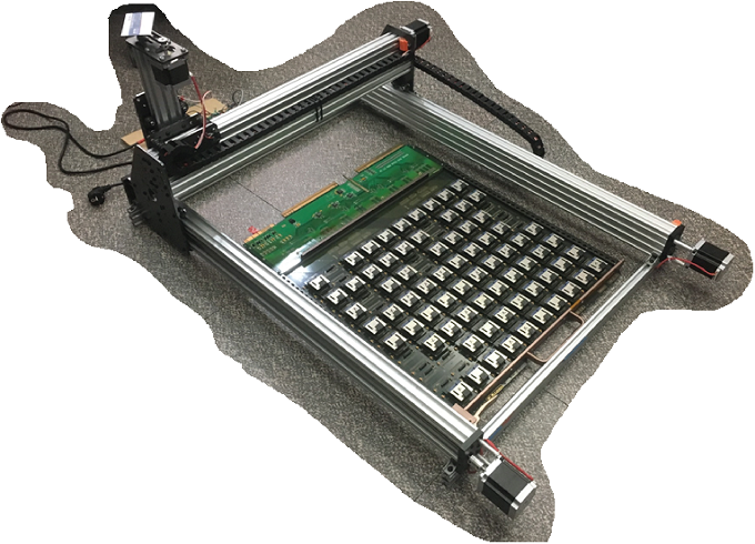 매칭기인 UHF 900MHz RFID plotter형 리더는 RFID 태그가 부착된 소켓보드와 소켓보드가 장착되는 시험보드의 정보를 부착된 리더기를 통해 자동으로 정보를 읽고 취합하여 서버에 갱신하는 장비로서, 개별 자산의 테스트 투입 상황 파악 및 테스트 시료 정보를 추출할 수 있는 정보 기반을 만든다.