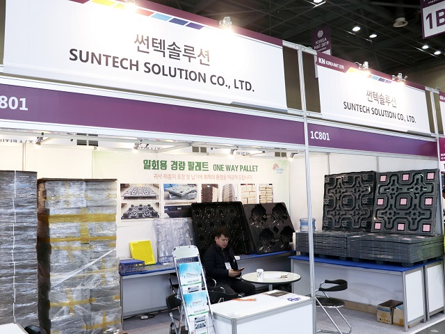 이번 전시회에서 썬텍솔루션은 일회용 경량 팔레트를 선보였다.