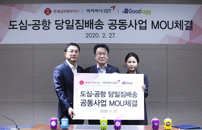 아시아나IDT(대표이사 박세창)와 롯데글로벌로지스(대표이사 박찬복), 굿럭컴퍼니(대표이사 윤소희)가 도심-공항간 당일 짐배송서비스 사업을 공동 추진한다.