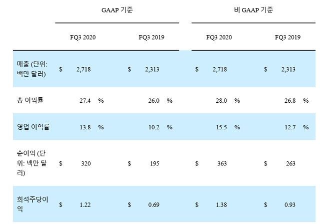 이어 그는 “이러한 어려운 환경 속에서도 우리는 탄탄한 재무 성과 및 중반기 가이던스를 뛰어넘는 매출과 GAAP 기준 희석주당이익을 달성했으며, 계속해서 탄탄한 잉여현금흐름을 창출해냈다”고 덧붙였다.
