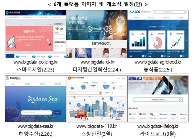 과학기술정보통신부(이하 과기정통부)와 한국지능정보사회진흥원(이하 지능정보원)가 디지털 뉴딜 핵심 프로젝트인 ‘데이터 댐’의 일환으로 구축한 농식품, 디지털 산업혁신, 라이프로그, 소방안전, 스마트치안, 해양수산, 총 6개 분야 빅데이터 플랫폼의 서비스를 정식으로 개시한다고 22일 밝혔다.