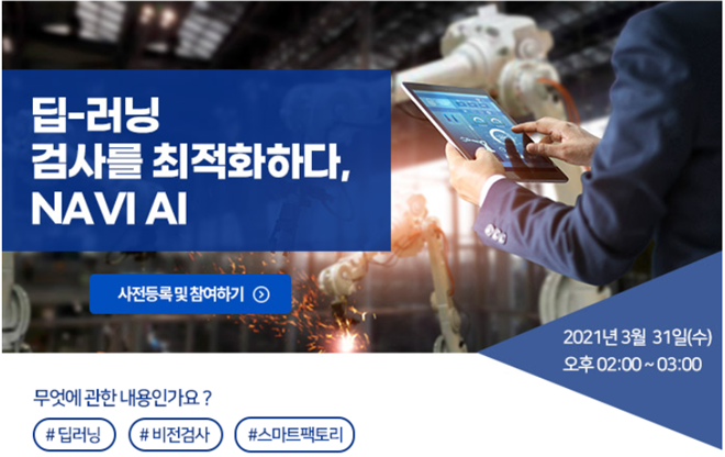 한 시간 동안 진행되는 웨비나에서는 룰 기반 검사와 딥러닝 기반 검사 공정을 비교하고, 딥러닝 적용 사례별 NAVI AI의 원리와 특장점을 소개한다. 발표 마지막에는 15분 가량의 질의응답 시간도 계획돼 있다.