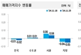 11월 4주간 아파트 매매·전세가 각 0.02% 하락, 0.01% 상승
