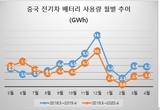 중국 전기차용 배터리 사용량 전년 동월 대비 9개월 연속 감소