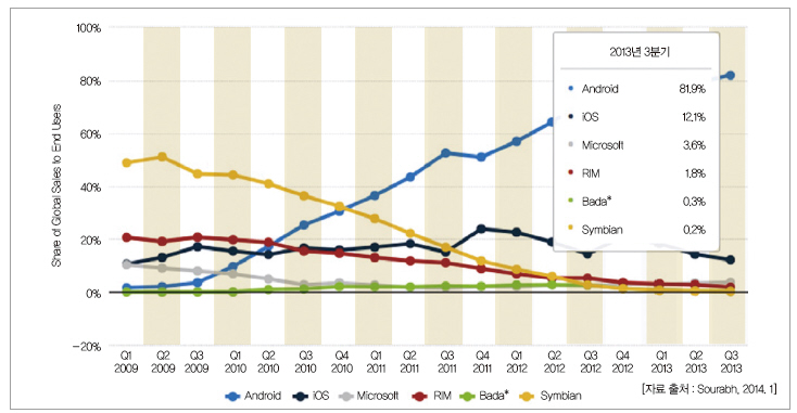 그림 3. 스마트폰용 OS별 점유율 변화 추이