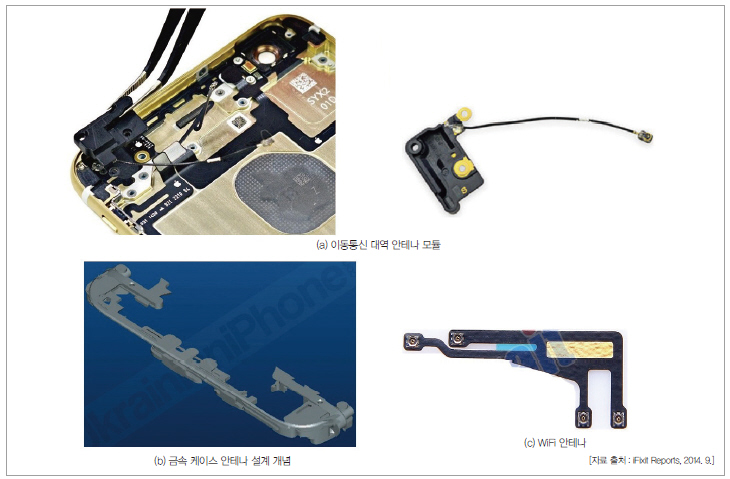 그림 6. 아이폰6 Plus의 이동통신 안테나 모듈과 WiFi 안테나