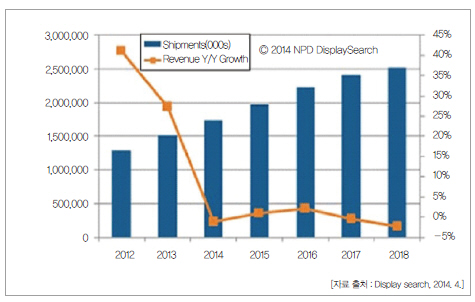그림 7. 연도별 터치 패널 생산량 및 성장률 전망