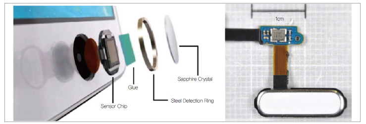 그림 8. 아이폰5S의 터치 ID 지문인식 센서와 갤럭시 S5의 지문인식 센서
