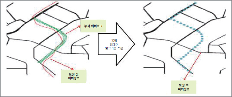 이러한 문제를 해결하기 위해 개발된 기술이 맵 매칭(Map-Matching)기술이다. 특히, 맵 매칭 기술은 지도의 오차를 극복하는 것은 물론, 특수한 장애 상황에서의 위치 표시 정확도를 나타내는 기술로 표현되어야 한다. 따라서 필터링 기술, 퍼지(fuzzy) 이론, DR(Dead Reckoning)과의 연계 등 맵 매칭 기술이 개발 및 발전됐다.