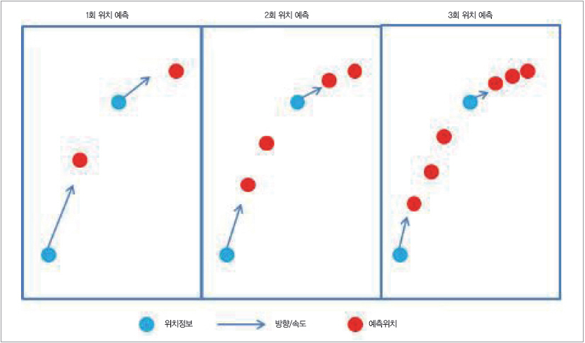 다중 센서로 수집하는 위치, 가속도, 방향 등의 로그 정보(이력)를 실시간 분석하여 위치 예측 및 음영구간(위치 정보 비 수집 구간) 위치 정보를 산출한다. 로그 분석을 통해 초 단위 위치 정보 수집으로 통신량을 감소시킨다.