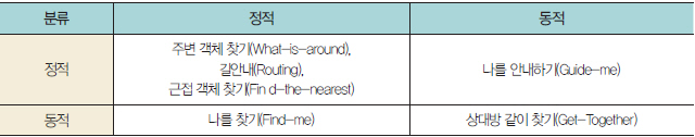 ▲ 표 1. 객체의 특성에 따른 위치 기반 질의 예