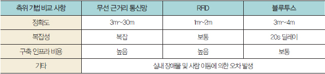 ▲ 표 2. 실내 측위 기법 비교
