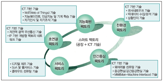 이처럼 제조업의 대내외 환경 변화와 IT 융합 기술의 발전, 소프트웨어 중심의 공장 운용 개선 요구 등은 제조업 업그레이드 전략의 절실함을 일깨우게 했다. 제조 혁신은 결국 제조업의 고부가가치화, 생산기술 주도권 확보, 글로벌 경쟁력 강화, 고용 창출로도 기대할 수 있게 한다. 공급자 측면에서는 스마트 팩토리 관련 글로벌 경쟁력을 확보해 나갈 수 있는 계기가 된다.