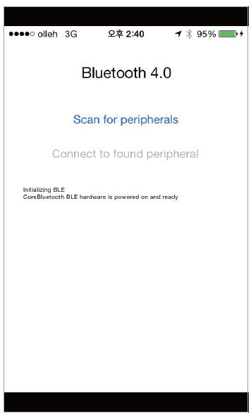 그림3. 아이폰용 블루투스 4.0 샘플 앱 화면