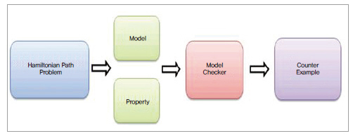 •위와 같은 정보를 모델과 속성으로 표현하며 모델 체커는 모델과 속성을 받아들여서 만약모델이 속성을 만족하지 않으면 반례(Counter example)를 생성하여 이를 해석해 해밀턴 경로를 얻을 수 있다.