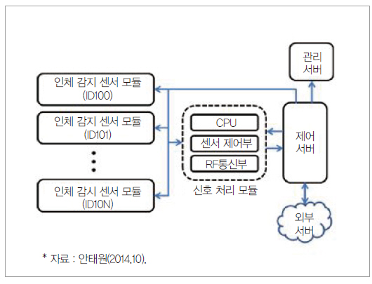 그림2. 인체감지 센싱 구조의 센서 관리 시스템 개념도