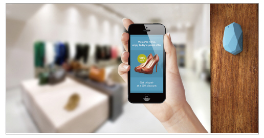 아이비콘과 유사하게 동작하는 제품을 만들고 판매하는 에스티모트(그림 1)가 소개한 내용을 바탕으로 아이비콘이 블루투스를 이용해 어떻게 위치를 측정하고 정보를 전달하는지 살펴보겠다.