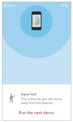 비콘을 이용한 프로그래밍 구조는 비콘에서 송신하는 전파의 정보를 이용해 비콘과 아이폰과의 거리를 측정하는 방식이다. 그림 2는 비콘과 아이폰이 근접했을 때 표시를, 그림 3은 비콘과 아이폰이 어느 정도 떨어졌을 때 표시를, 그림 4는 비콘과 아이폰이 통신 가능한 거리 이상일 때 표시를 보여준다.