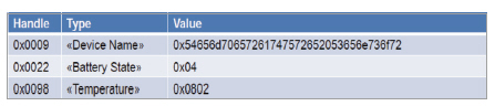 온도계 프로파일은 속성 정의 프로파일(Generic Attribute Profile)의 세부 정의에 의해 구현된다(그림 8). 초기 스마트폰과 장치가 통신할 때 이 프로파일을 통해 어떠한 정보가 전달될 것인지 이 프로파일에 의해 확인을 하고 정보를 전송 및 수신하게 된다.