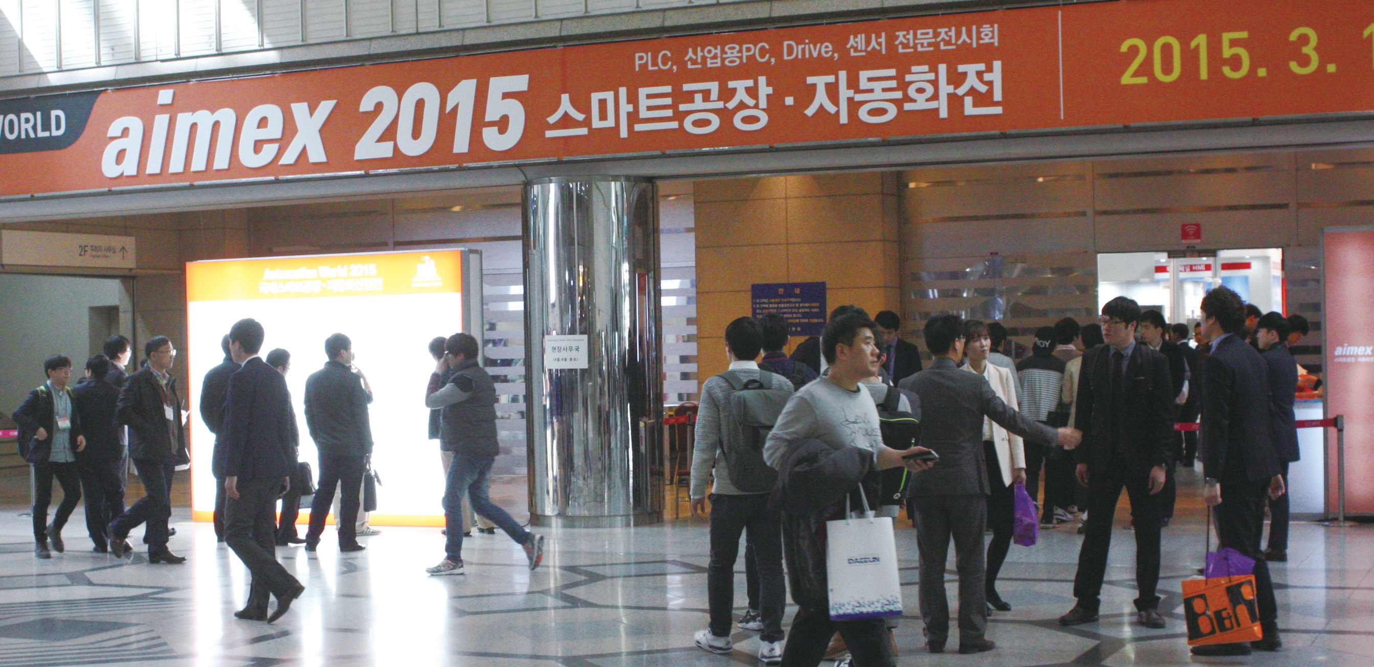 2015년 오토메이션 월드는 ‘자동화를 넘어 스마트로(Beyond Automation Toward Smart)’를 전시회 슬로건으로, ‘한국형 스마트공장’의 현재와 미래를 제시했다. 전시장 곳곳에는 제조업에 적용 가능한 IoT·3D 프린팅·빅데이터·CPS 등 인접 기술을 활용한 시도가 활발히 진행되는 모습을 볼 수 있었다. 또한, 전시회 부대행사로 3월18일과 20일에 열린 스마트공장 국제컨퍼런스에서는 국내외 스마트공장 관련 기업과 싱크탱크들이 스마트공장 우수사례 등 발표와 함께 핫이슈를 쏟아냈고, 행사장에는 한국형 스마트공장 모델을 찾기 위해 산업자동화 관계자 500여 명이 참석했다.