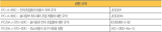 ▲ 표 1. 무연 솔더 신뢰성 규격