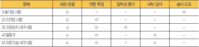 ▲ 표 2. 와이어 솔더링 전장품 평가 절차