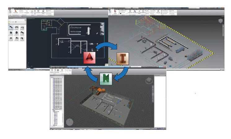 특히 대형 제조 시설을 오토캐드로 레이아웃하고 이를 나비스웍스에서 3D로 신속하게 변환할 수 있다.