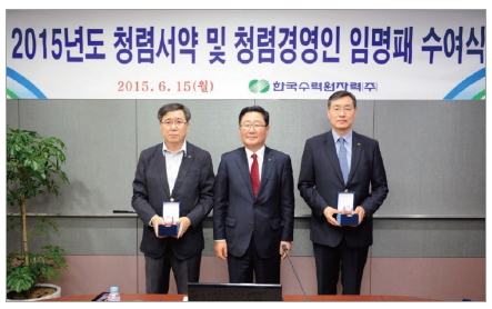 한국수력원자력(이하 한수원)은 상임이사, 본사 처·실장 및 1차 사업소장 전체 등 50여 명이 한수원 서울사무소에서 청렴을 다짐하며 청렴 서약서에 서명했다. 이날 서약식은 2012년 이후 비리 근절을 위해 추진됐던 개선 대책의 성과를 되돌아보고, 투명하고 안전한 원전 운영을 통해 국민이 신뢰하는 한수원으로의 도약을 위한 발판으로 삼고자 마련됐다.