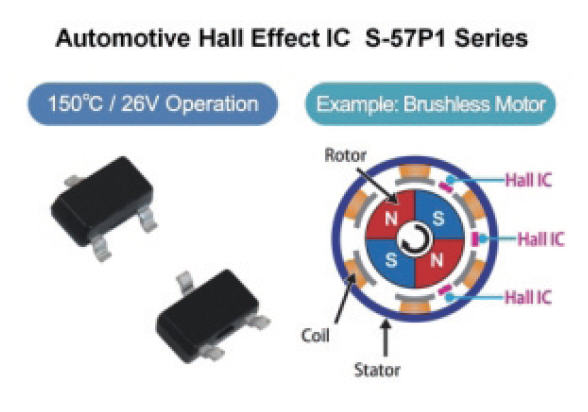 S-57P1시리즈는 최고 작동 온도가 150℃이고 작동 전압이 26V로, 주로 수요가 많은 자동차 애플리케이션을 지원하도록 설계되었다. 바이코양극 래치형 홀 효과 센서 IC는 자장의 변화를 감지해 자장의 강도와 극성에 따라 고전압 또는 저전압 준위를 출력한다. 설계자들은 센서와 자석을 결합하여 회전 감지를 바탕으로 작동하는 애플리케이션을 설계할 수 있다.